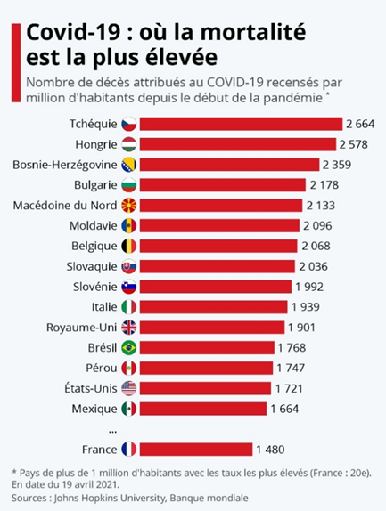 Voici les tailles moyennes des hommes et des femmes dans différents pays et le nombre de décès dus au coronavirus au 1er oct. 2021.