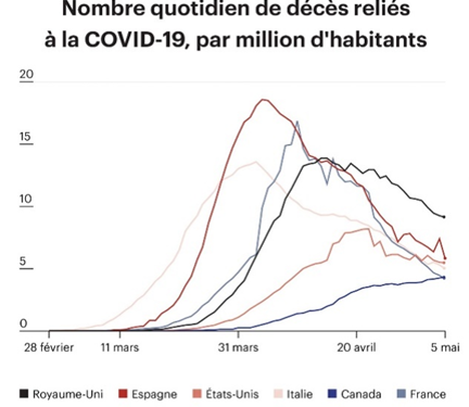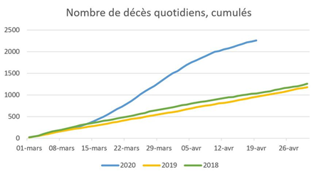 a) Voici la comparaison des courbes de décès au début des années 2018, 2019, 2020. Que pouvez-vous en déduire.